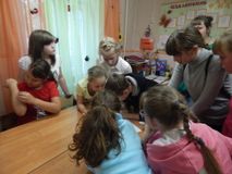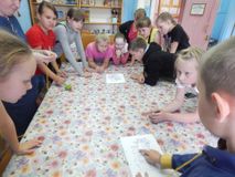 Громко звали дети своих наставников на сцену, но увидели лишь волшебный самолетик, принесший им письмо, в котором сообщалось, что педагоги для своих детей придумали интересное задание и, получив маршрутные листы, учащиеся отправились в путешествие по «Планете творчества». В каждом кабинете они выполняли интересные задания, а взамен получали часть общей картины.